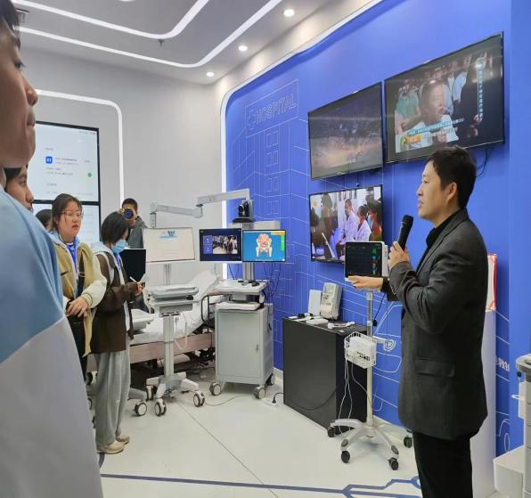 东软汉枫相关部门负责人先后向同学们讲解了医疗科研创新、智慧物联医院建设与应用、智慧医院管理、硬件研发设计等主题知识,组织师生参观了智慧医疗展厅,引发了学生们对于智慧医疗相关技术的浓厚兴趣。