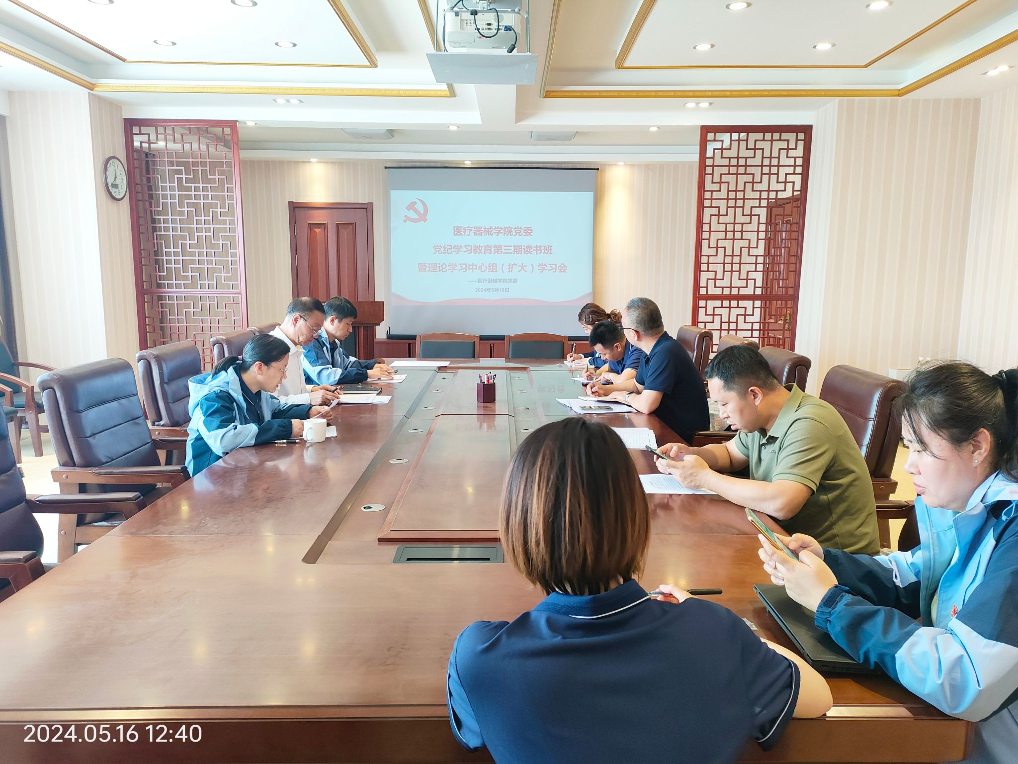 5月16日,学院党委召开党纪学习教育第三期读书班暨党委理论学习中心组(扩大)学习会,学院领导班子成员、党委委员、纪委委员、各党支部书记参加会议。学院党委书记裴志强主持会议。