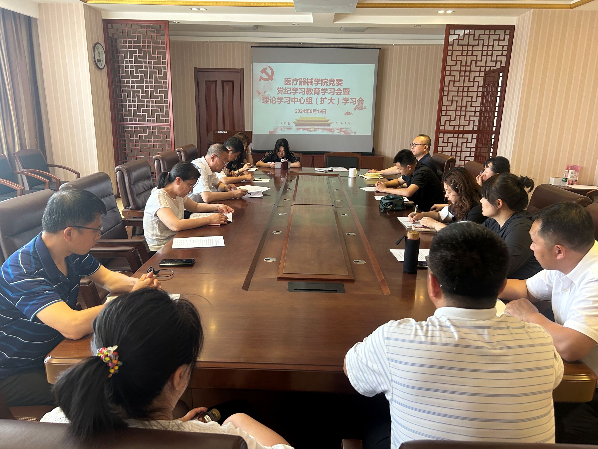 6月14日,学院党委召开党纪学习教育第五期读书班暨党委理论学习中心组(扩大)专题学习会,学院领导班子成员、党委委员、纪委委员、各党支部书记参加会议。学院党委书记裴志强主持会议。