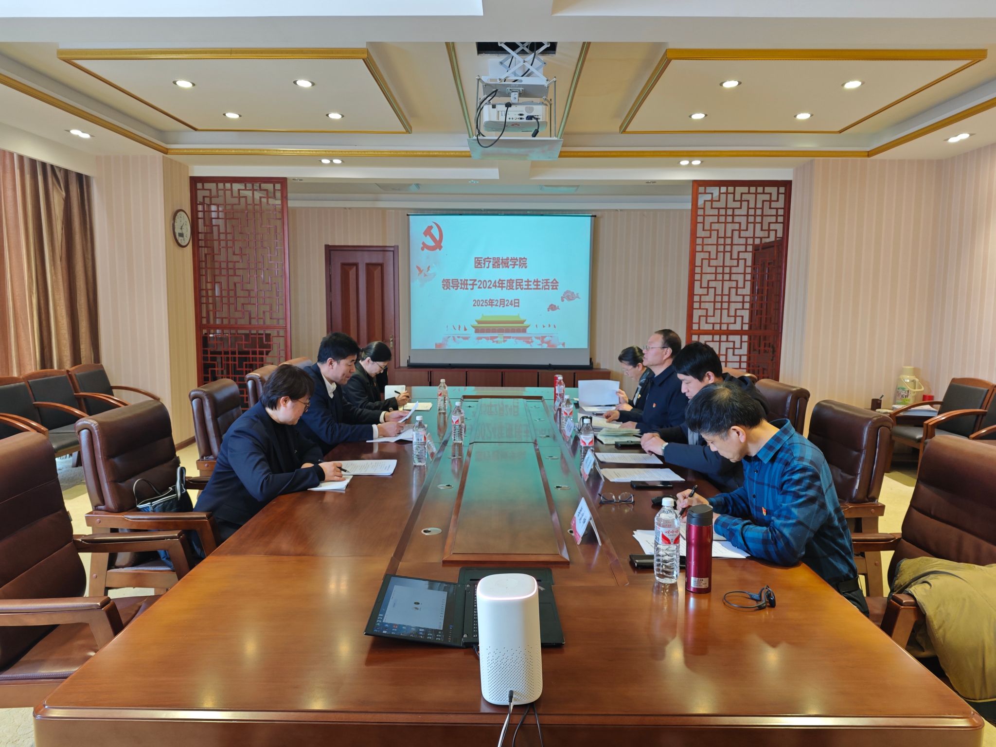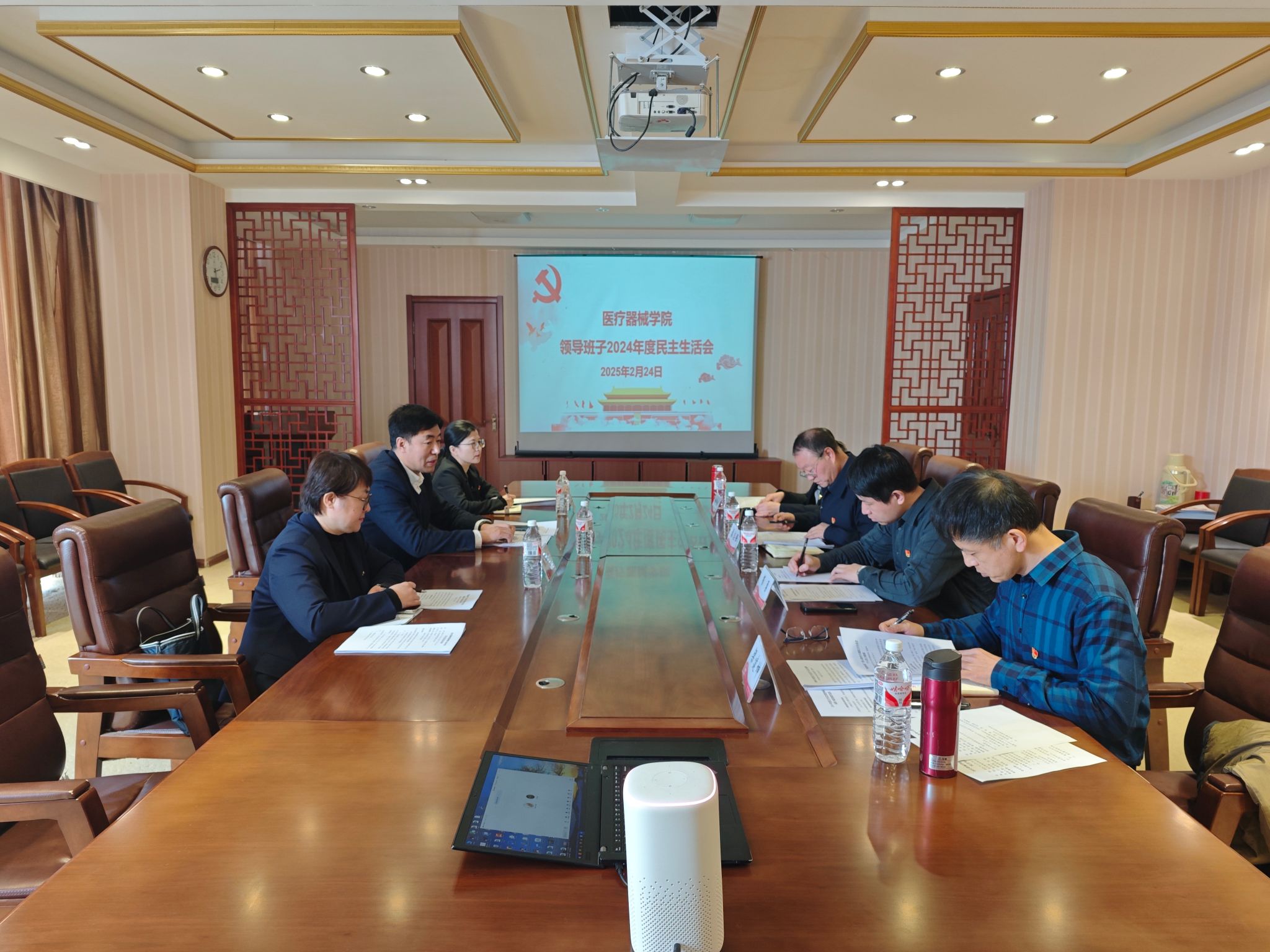 会上,通报了院党委学习贯彻习近平新时代中国特色社会主义思想主题教育专题民主生活会整改措施落实情况和院领导班子2024年度民主生活会征求意见情况。裴志强代表院党委领导班子做对照检查,并带头进行个人对照检查,紧密围绕会议主题查摆存在的突出问题,深挖问题根源,明确整改措施。学院领导班子成员及党委委员结合个人思想和工作实际,依次进行对照检查,严肃开展批评和自我批评,达到了统一思想、深化认识、凝聚力量的目的。