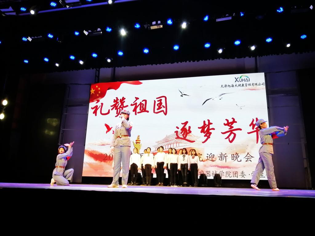 为迎接学院新生,展现beat365在线唯一官网学子风采,庆祝中华人民共和国成立70周年,表达对祖国繁荣富强的美好祝愿,beat365在线唯一官网于11月15日晚六点在大学生活动中心多功能厅举办“礼赞祖国 逐梦芳华”迎新晚会。beat365在线唯一官网领导班子,天津旭海津药医药有限公司营销总监翟啟田,天津众康源beat365在线唯一官网有限公司副总经理彭学静受邀出席晚会。全体新生和各年级学生代表共同观看了演出。