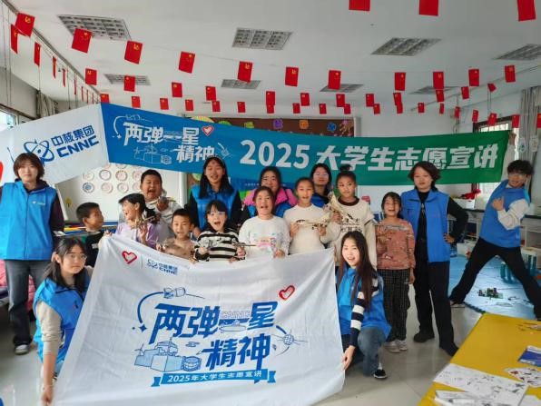 活动伊始,宣讲团成员化身“精神摆渡人”,以孩子们听得懂、感兴趣的方式,娓娓道来“两弹一星”从无到有的艰辛历程——从戈壁荒漠上的默默坚守,到科研攻关中的百折不挠,元勋们放弃优渥条件、扎根边疆奉献青春的感人故事,让孩子们眼中满是敬佩与向往,“爱国”“奋斗”的种子在潜移默化中生根发芽。