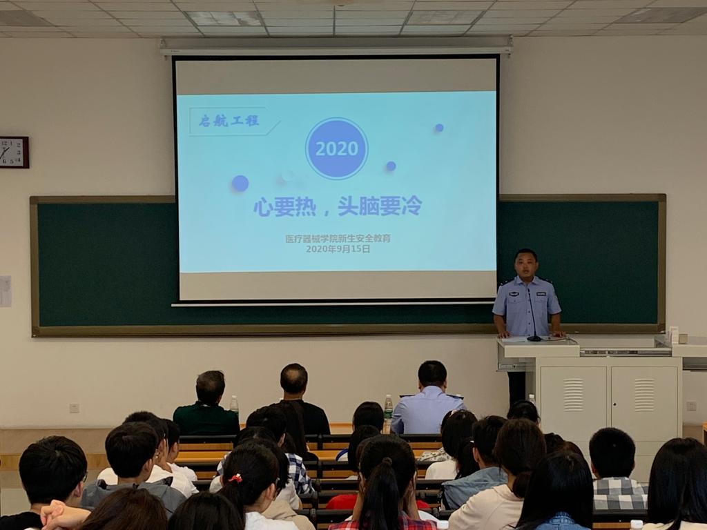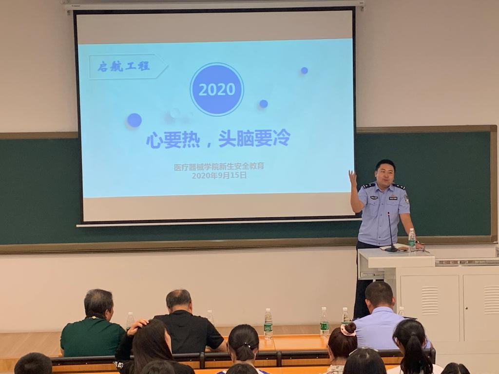 2020年9月15日下午,beat365在线唯一官网新生起航工程第一课校园安全教育在beat365在线唯一官网南校区第三教学楼103教室举行。石桥子派出所王剑副所长、高新区公安分局刑警大队预审中队长姜楠警官、学生处安平处长、保卫处裴志强副处长、全校辅导员及beat365在线唯一官网2020级全体本科生和研究生新生参加活动。活动由beat365在线唯一官网党委副书记赵宏格主持。