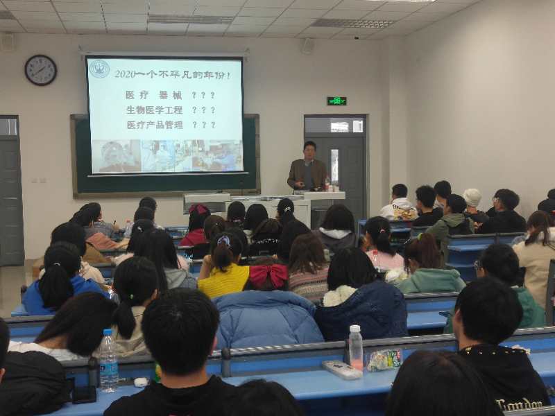 张景海院长以“现在 未来”为题,向同学们介绍了beat365在线唯一官网及生物医学工程的发展历史,从医疗器械产业、生物医学工程学科及医疗产品管理专业的定义引入,以简洁易懂的语言,从产业及学科的形成与发展为学生解读专业,由浅入深。从国内外医疗器械公司所占市场份额及中国医疗器械市场现状分析,鼓励学生强化自身能力,积极投入到中国医疗器械产业的建设中。张院长详细介绍了医疗产品相应管理法规、医疗器械行业产业链涉及的主要环节、行业对人才的需求及本科毕业后的发展方向,使学生对行业对岗位及人才需求有了更清晰全面的认识。同时结合企业对人才培养的需求指出沈药学生的优势与不足,强调同学们需要对专业自信、理解,对自己的未来要有独立的思考,明确自己的学习目标,做社会需要的人才。