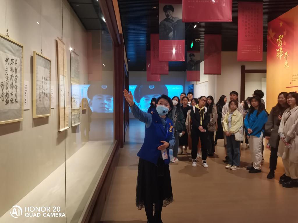 辽宁省博物馆“永恒的雷锋”展厅讲解员陈老师以毛泽东、刘少奇、朱德、陈云等老一辈革命家为雷锋同志的题词为切入,雷锋为什么是时代的楷模为主线,全方位多角度就雷锋精神为党支部师生带来倾情讲解。针对辽宁是雷锋精神发源地,详述辽宁“雷锋”郭明义等事迹,将雷锋精神进行升华。