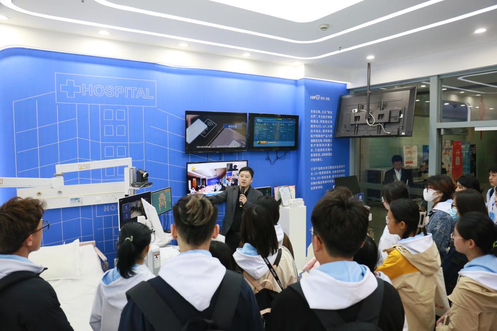 仪式结束后,东软汉枫相关部门负责人以医疗科研创新、智慧物联医院建设与应用、智慧医院管理、硬件研发设计等为主题做专题报告,同时从5G移动远程医疗、临床数据采集、医疗废物管理系统等方面为师生答疑解惑。