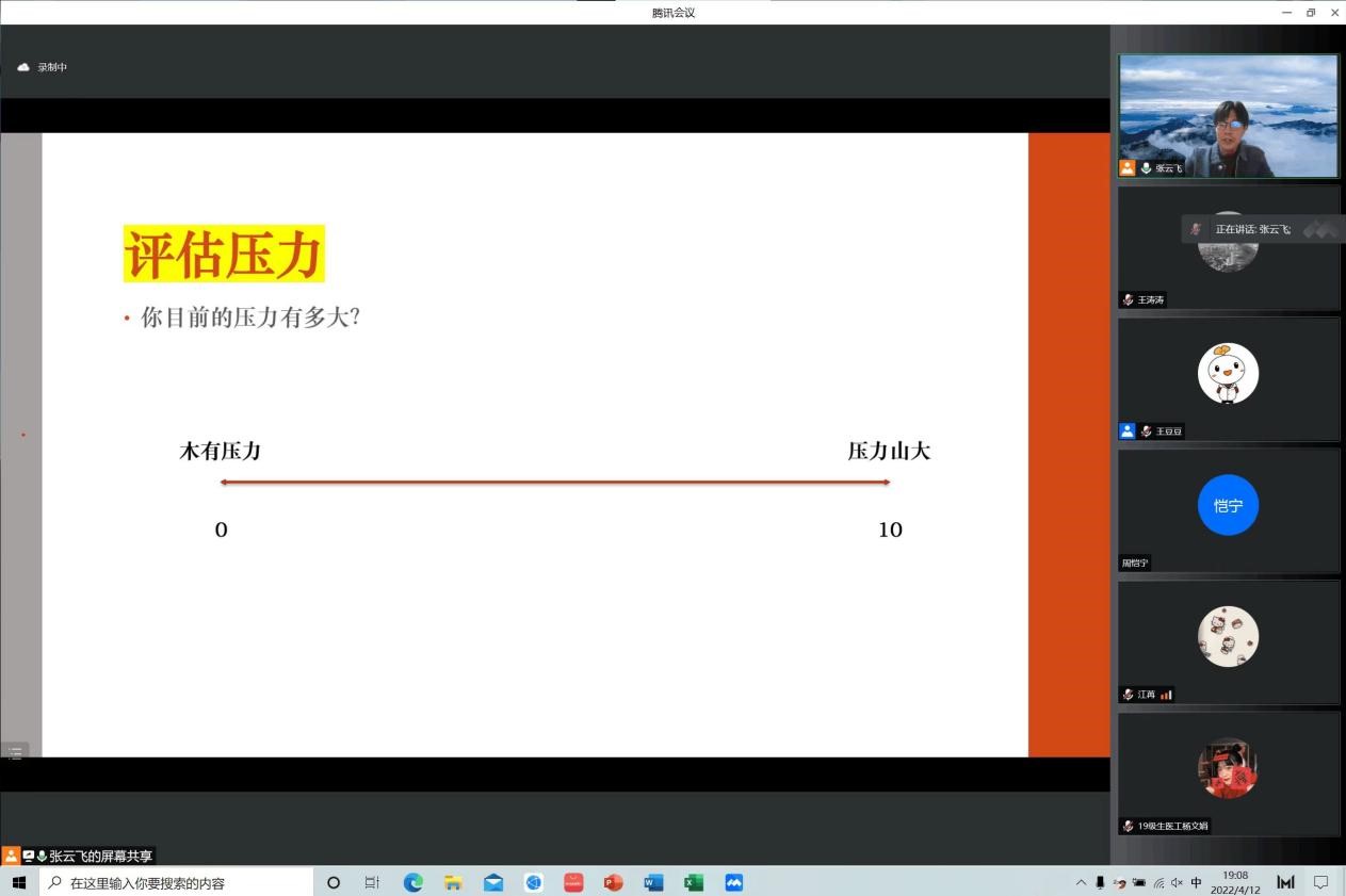 为做好疫情期间全院学生的心理健康服务工作,引导学生以积极正确的心态应对疫情,有针对性的进行防疫心理疏导,提升学生心理素质,4月12日19:00,beat365在线唯一官网学生工作办公室邀请沈阳建筑大学心理健康中心张云飞老师,面向学院全体学生开展了以《疫情封校期间的压力管理》为主题的线上心理讲座。