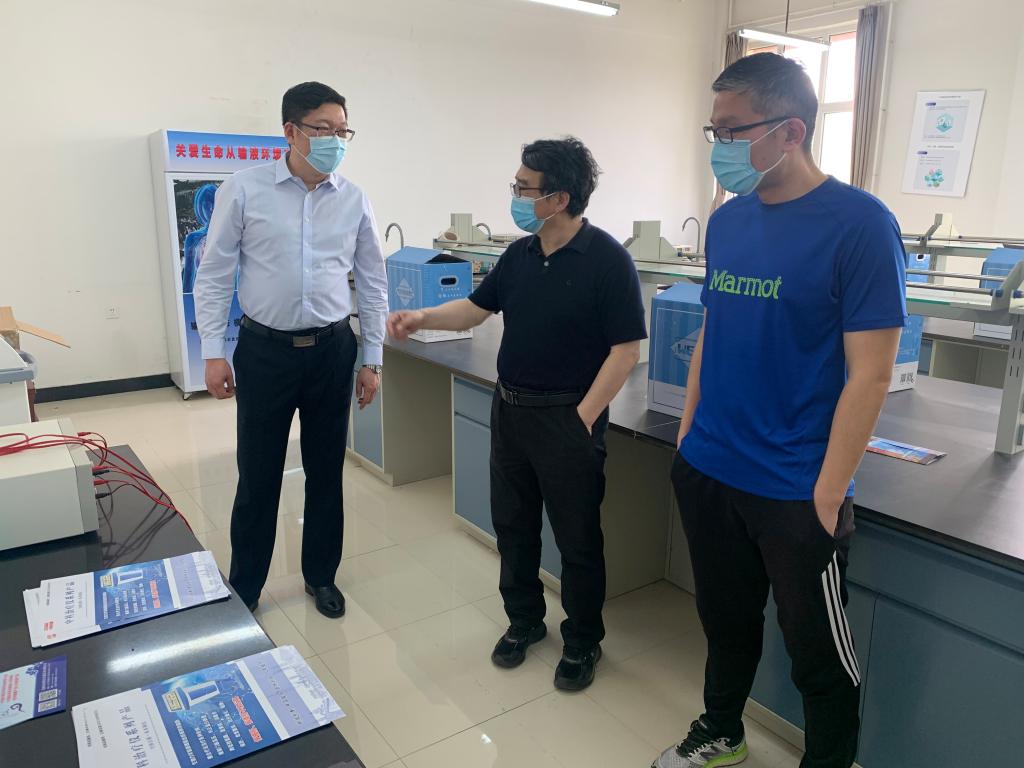 程卯生校长对学院各实验室、工作室逐一进行检查,对实验室硬件设施使用、安全管理情况及学院学科建设与发展给予了指导。在各实验室、工作室,程校长与学生进行了亲切交谈交流,详细询问自校园封闭以来大家的学习、生活和工作情况,并鼓励大家克服困难,努力完成好科研工作。程卯生校长强调,居家办公的老师们要坚持每天在线上与学生交流、谈心、指导实验;入校值守的老师们要贴近学生生活、关心关爱学生,积极开展调研,畅通意见反馈渠道;各实验室要做好实验室安全,学生们做好个人防护。