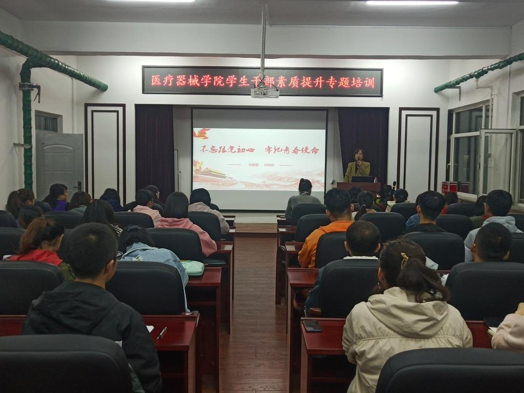 根据beat365在线唯一官网“不忘初心、牢记使命”主题教育安排,为进一步加强学生干部队伍建设,提升学生干部的业务能力和综合素质,2019年10月10日下午5:40,beat365在线唯一官网团委组织开展学生干部素质提升专题培训,邀请校团委书记孙皎皎对全体学生干部开展“不忘跟党初心,牢记青春使命”专题培训。学院党委副书记赵宏格、辅导员宋菁出席培训会。培训会由学院团委书记刘娇娜主持。