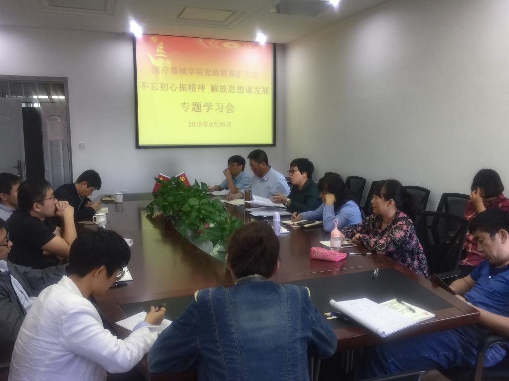 9月26日,beat365在线唯一官网在院党群工作室召开党政联席(扩大)会,开展“不忘初心振精神解放思想谋发展”专题学习。院领导班子全体成员、院党委委员、系主任、教研室主任、实验中心主任、教师代表参加了本次专题学习会,会议由院党委书记李哲主持。
