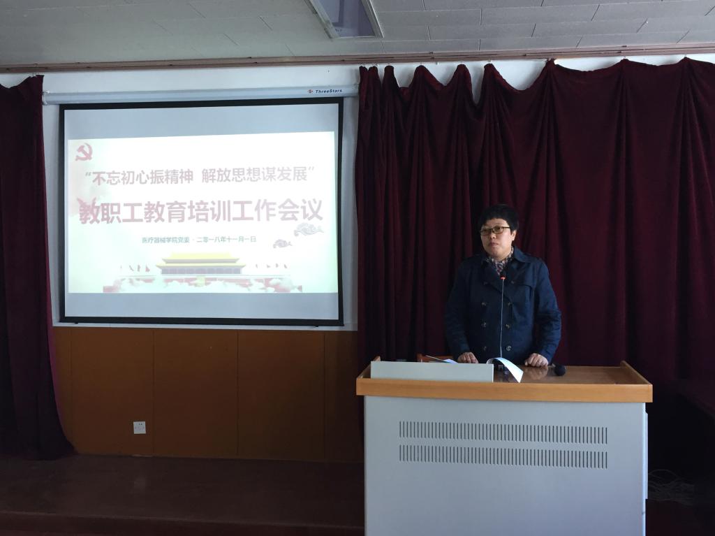 本次教职工教育培训工作会议作为学院党委开展“不忘初心振精神 解放思想谋发展”教育实践活动的一项工作安排,旨在使学院教师了解学校的最新动态和要求,同时使全院教师进一步提振精神,在教学、科研及学生管理等领域发展不断深入,为学校及辽宁的发展贡献力量。