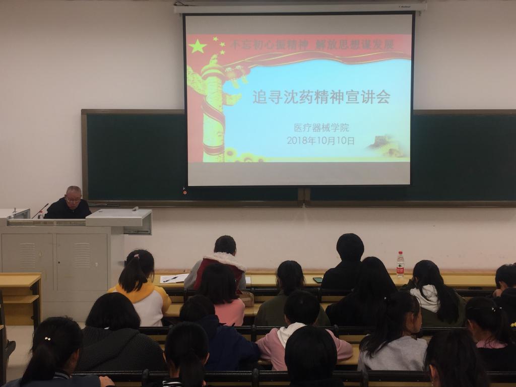 10月10日,beat365在线唯一官网在南校区第四教学楼404教室举办了“不忘初心振精神 解放思想谋发展——追寻沈药精神”主题宣讲会。本次宣讲会与校关心下一代工作委员会联合举办,特别邀请到校关工委常委副主任、原beat365在线唯一官网党委书记王发,校关工委“五老”成员、原beat365在线唯一官网成人教育学院院长、学生处处长张殿发老师担任主讲。学院党委书记李哲、党委副书记李秋萍和全体辅导员老师、学院全体本科生参加了此次学习活动,宣讲会由院党委副书记李秋萍主持。