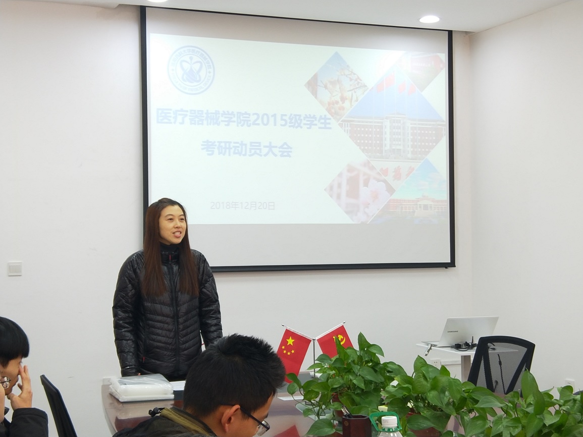 同时,刘老师讲解了考研过程中的注意事项,有关准考证、身份证、考试工具、考试过程等各方面的要求。最后,刘娇娜老师表达了对同学们的殷切期待,希望同学们能端正态度,明确目标,用信心,恒心,决心和平常心来积极面对考研。大会最后为同学们送上祝愿,祝愿同学们都能实现自己的梦想。