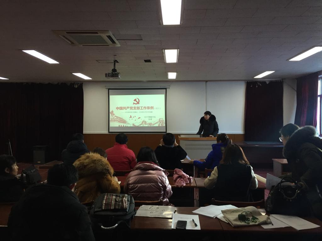 为进一步加强和改进党支部工作,加强党的组织体系建设,全面提升党支部组织规范化、强化党支部的政治功能,2019年1月2日,beat365在线唯一官网党委在主校区图书馆第二报告厅召开专题理论学习会,认真学习《中国共产党支部工作条例(试行)》。学院党委委员、纪委委员、党支部书记,组织员和各支部党员代表参会学习会。